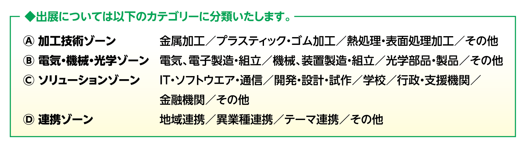 ◾️ 出展カテゴリー、分類